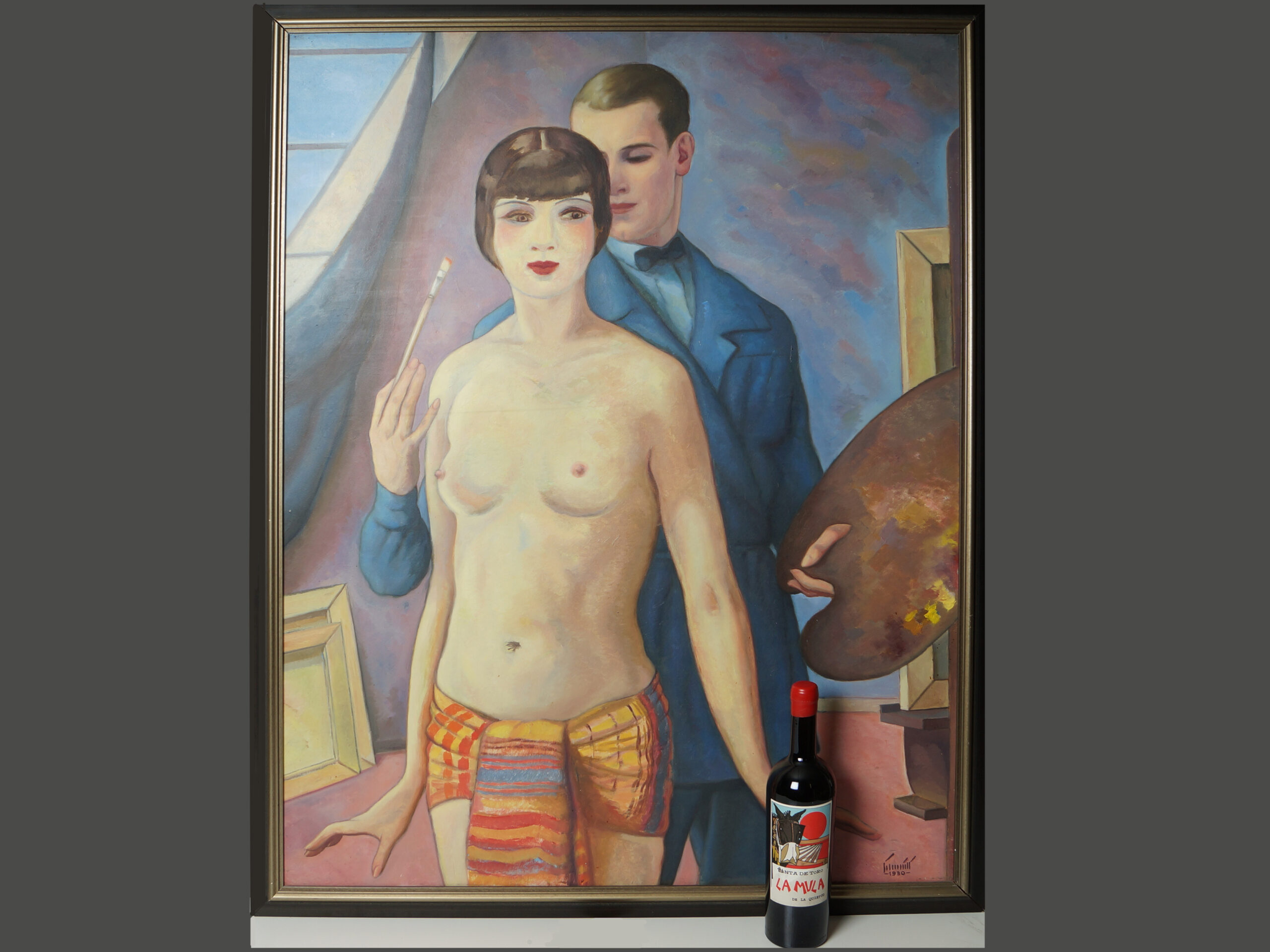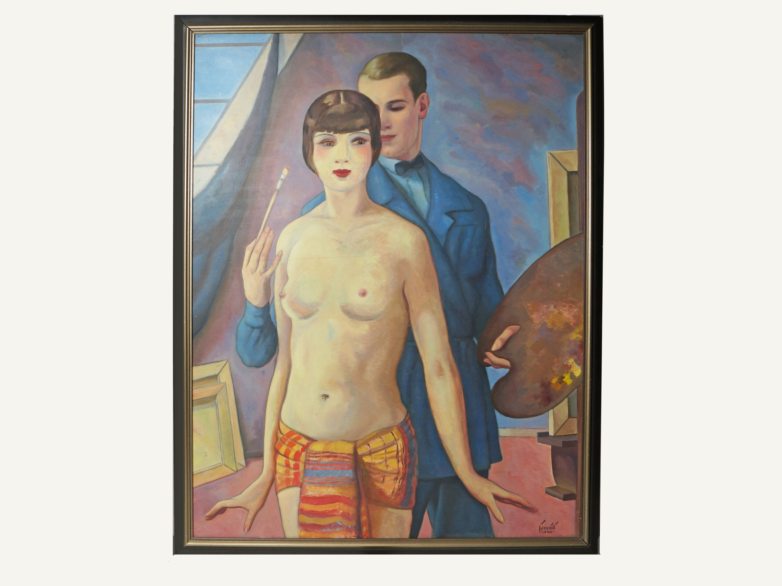 Der Maler und sein Model, neue deutsche Sachlichkeit, Oel auf Karton, signiert Schmitt, datiert 1930, 104×80 cm.